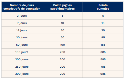 Ce challenge vous permet de gagner des Brads en vous connectant plusieurs jours d'affilé à l'app The Bradery. Les points sont automatiquement ajoutés à votre compte lorsque vous atteignez un nouveau palier de jours.
